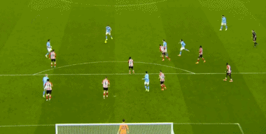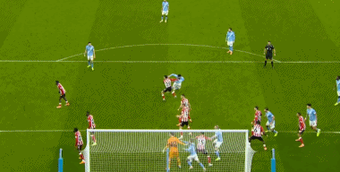 面对桑德兰的铁桶阵,曼城前30分钟都没有射正。比赛的第32分钟,迪亚斯禁区前右脚劲射破门,1比0!